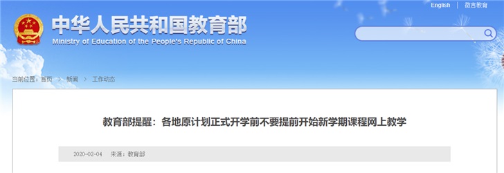 教育部:各地原計(jì)劃正式開學(xué)前不要提前網(wǎng)上教學(xué)
