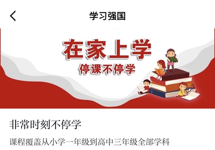 學(xué)習(xí)強(qiáng)國(guó)App推出“在家上學(xué)”專題課堂