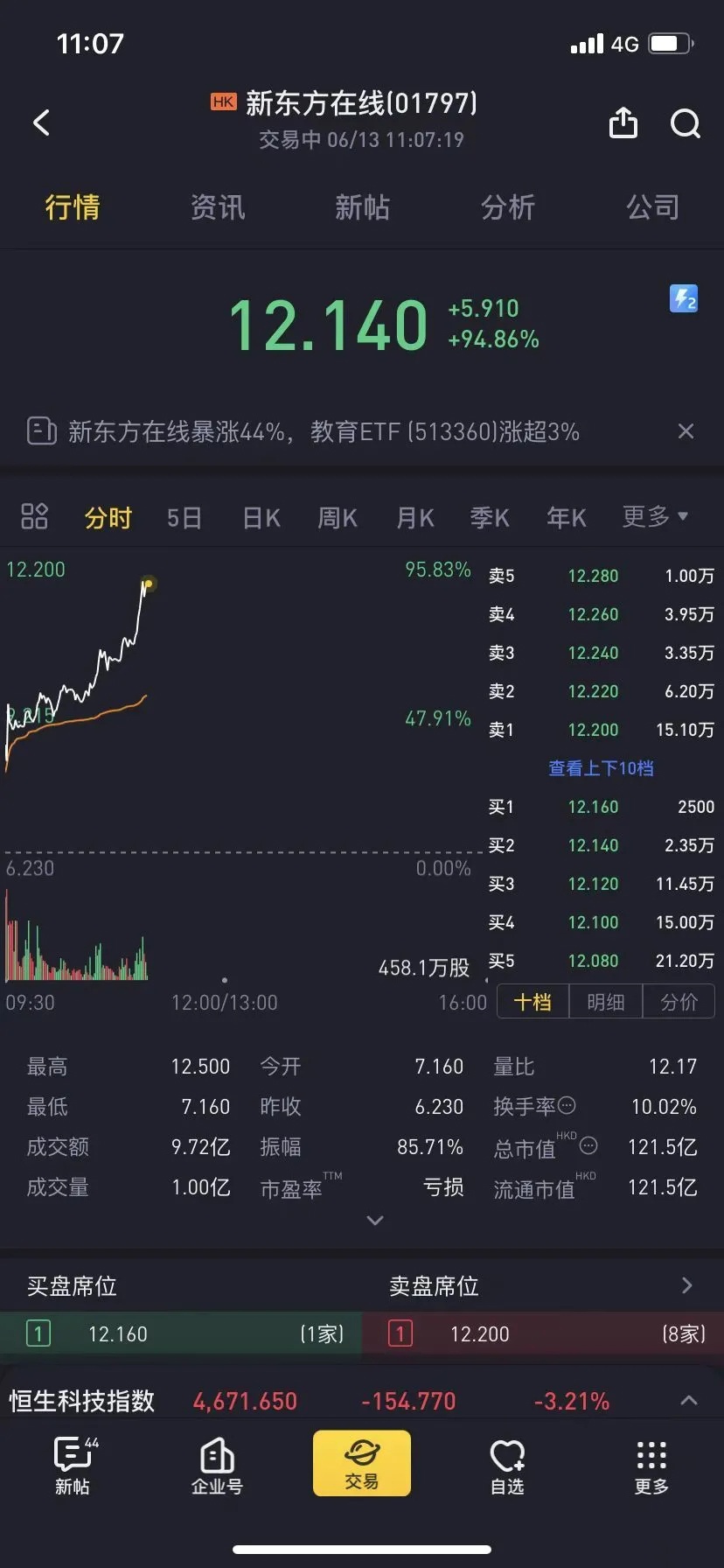 新東方直播帶貨周末成為市場(chǎng)最關(guān)注的話題,新東方主播突然成熱門(mén)搜索,新東方在線(01797 HK)6月13日開(kāi)盤(pán)后出現(xiàn)暴漲,盤(pán)中漲幅逼近100%,截 ...