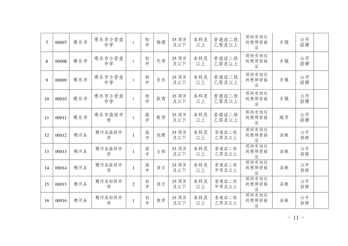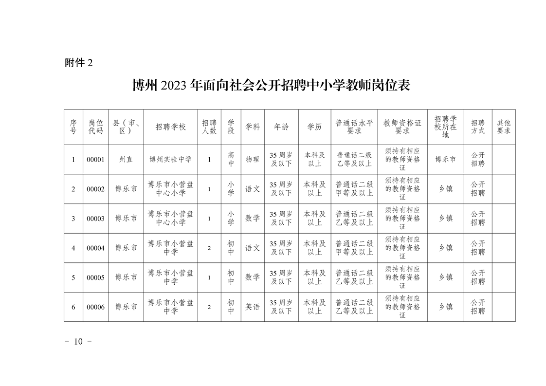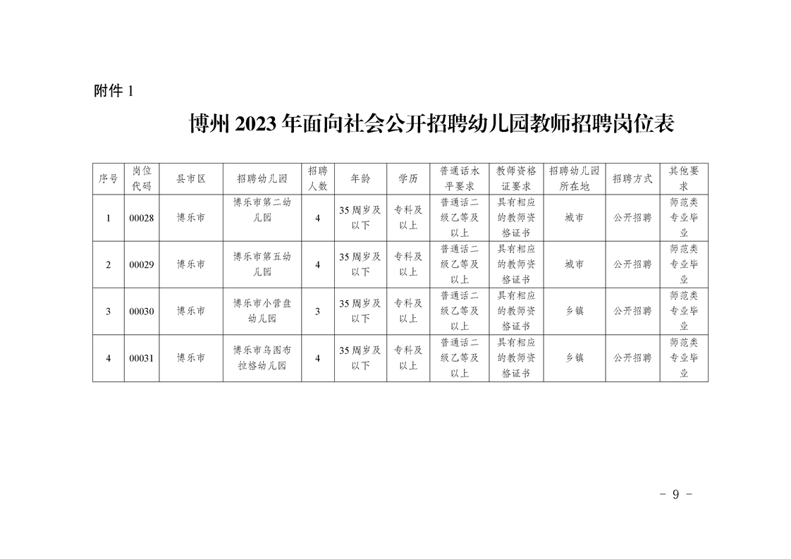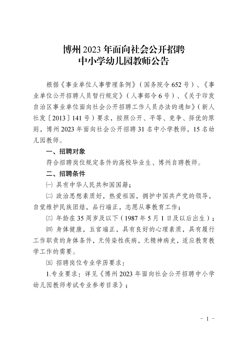 1.專業(yè)要求:詳見《博州2023年面向社會(huì)公開招聘中小學(xué)幼兒園教師考試專業(yè)參考目錄》;