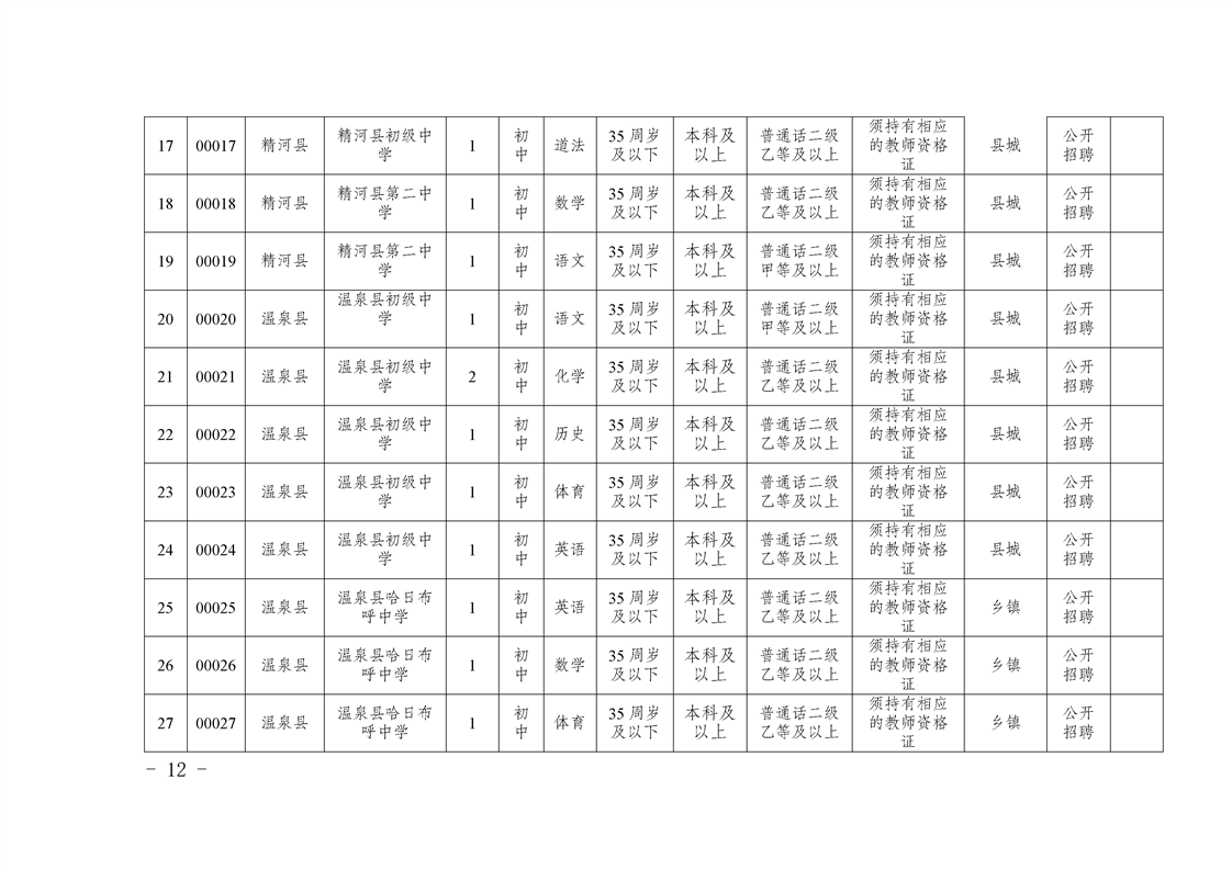 符合招聘崗位規(guī)定條件的高校畢業(yè)生、博州自聘教師。