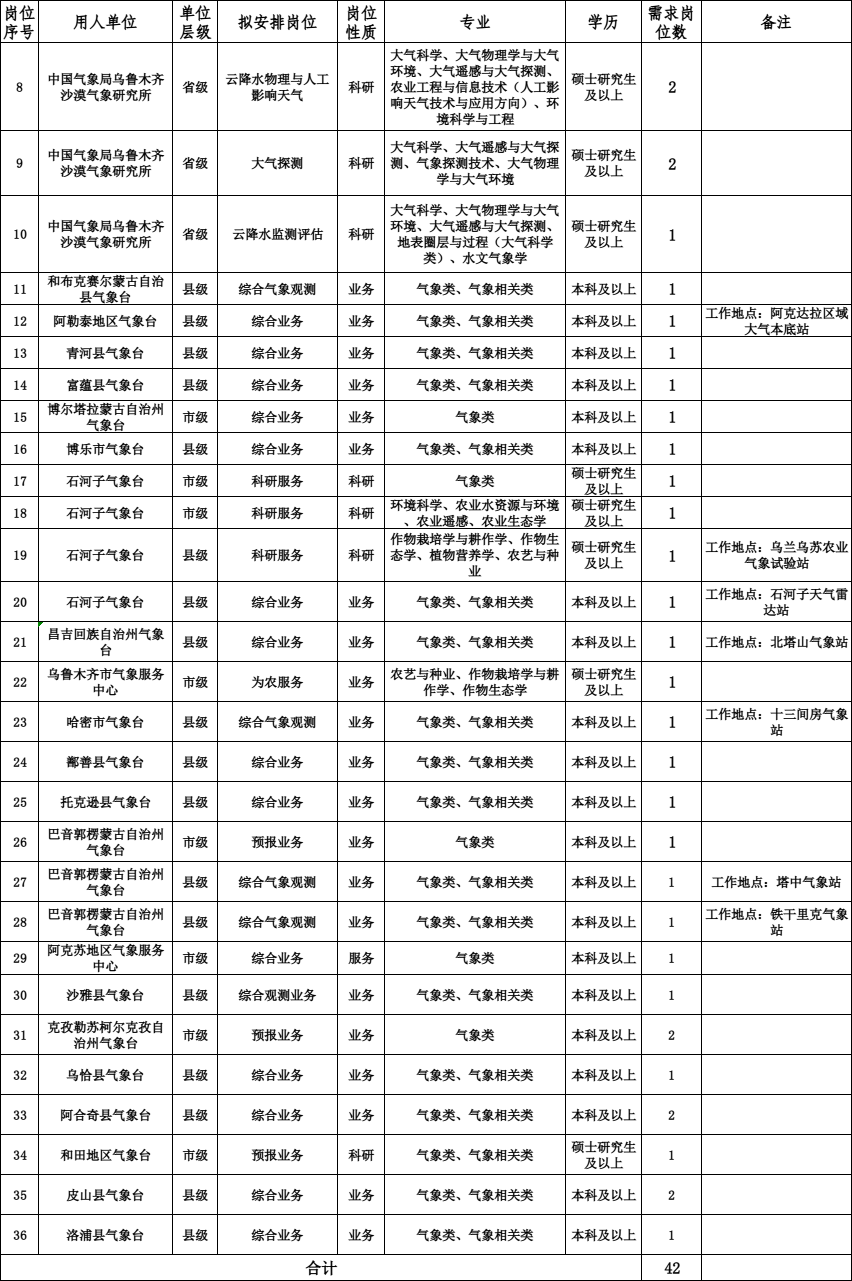 2024-03-12 17:09:00閱讀()新疆維吾爾自治區(qū)氣象局根據(jù)《氣象部門事業(yè)單位公開招聘人員管理辦法》,為加強新疆氣象人才隊伍建設,滿足新疆氣象事業(yè)發(fā)展需要,現(xiàn)面向各高等院校、科研院所應屆畢業(yè)生招聘事業(yè)編制工作人員,有關(guān)事項公告如下: