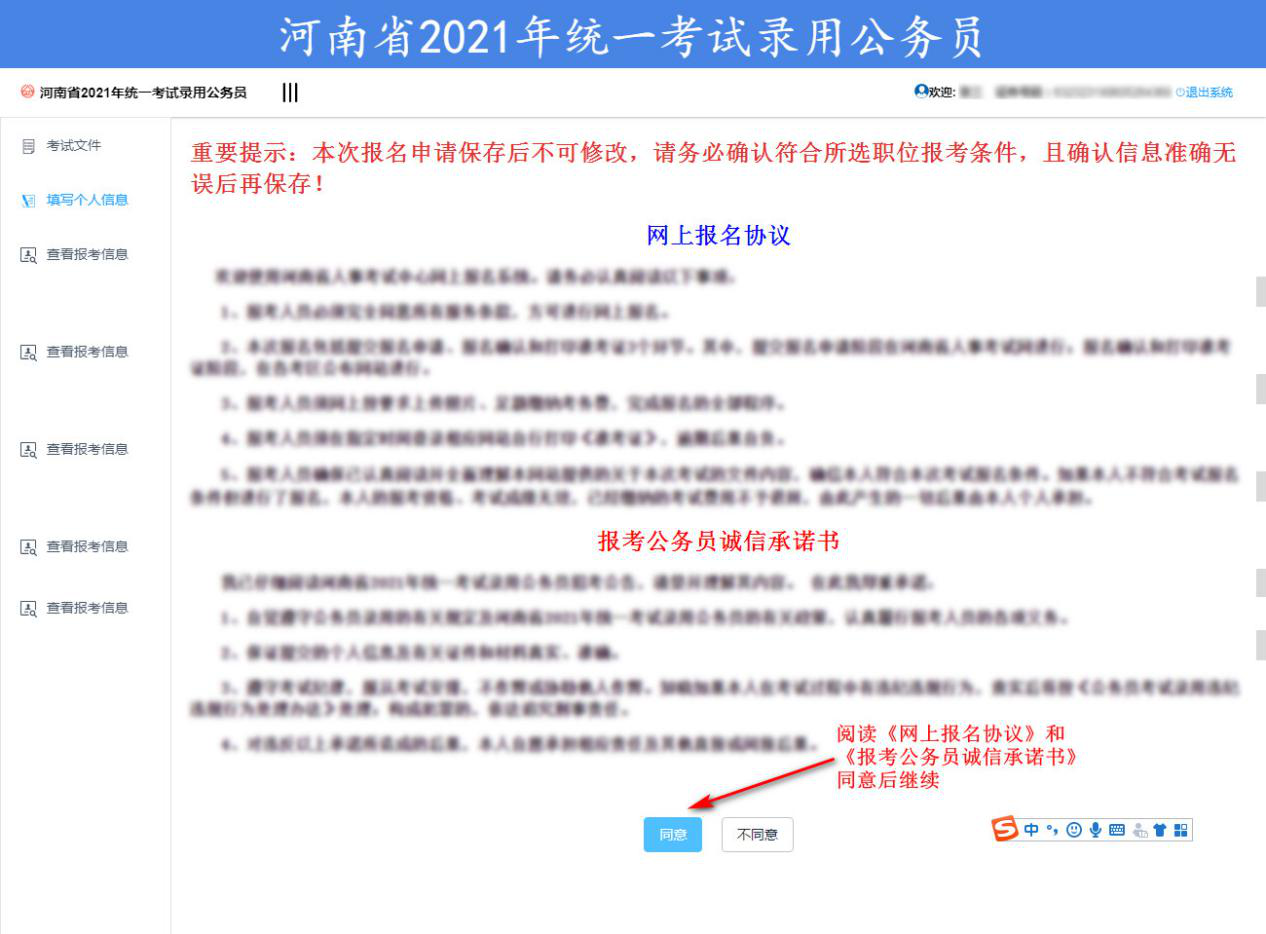 (一)認(rèn)真閱讀《網(wǎng)上報名協(xié)議》和《報考公務(wù)員誠信承諾書》,同意后繼續(xù)。