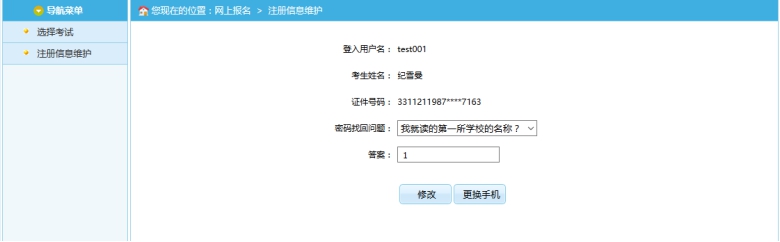 通過點擊系統(tǒng)導(dǎo)航菜單中“注冊信息維護”選項,可跳轉(zhuǎn)到修改注冊信息頁面,如下圖所示: