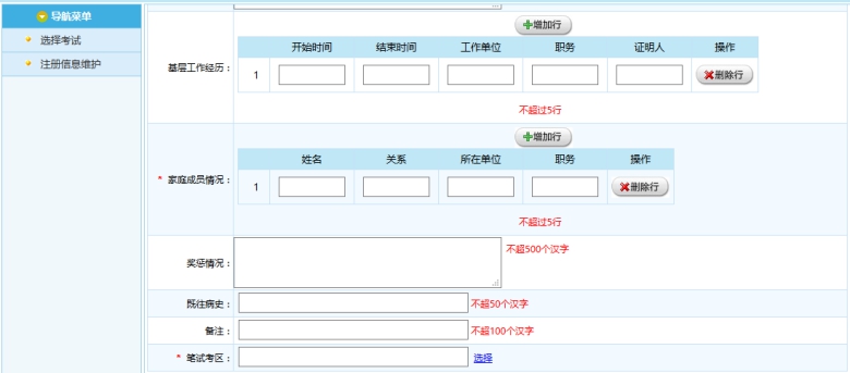 報考人員登錄后,請按照提示信息如實填寫考生的基本信息,請盡量將您的個人信息填寫的詳細,準確,以便您順利通過資格審查。(注意:對于通過筆試的考生,面試和資格復(fù)審將以您填報的信息作為依據(jù))