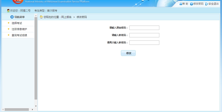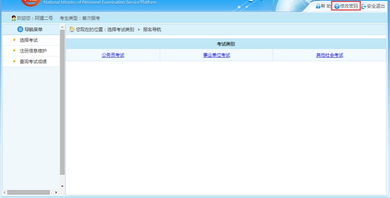 通過點擊系統(tǒng)右上角的“修改密碼”選項,如下圖所示: