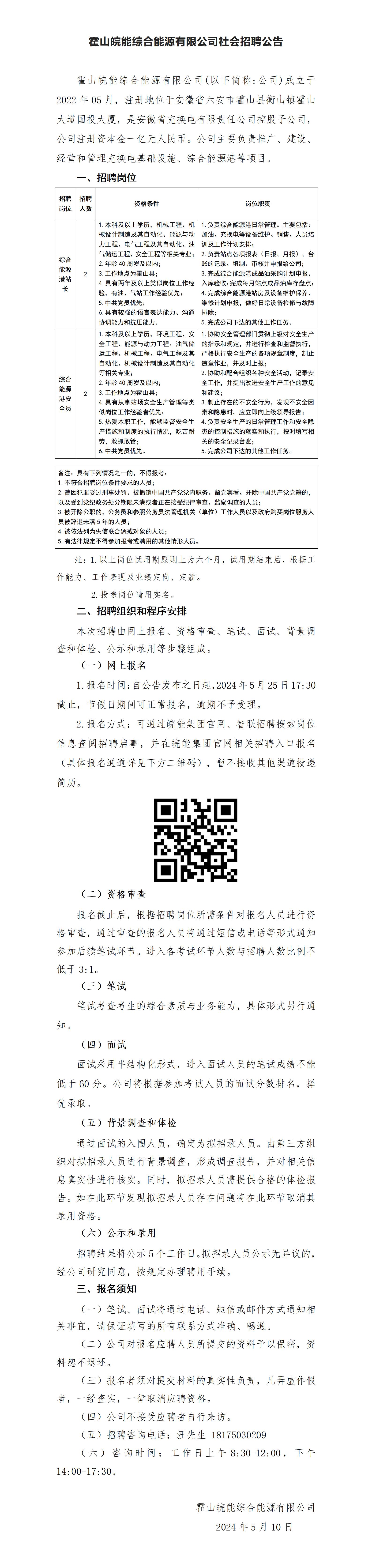 2024年六安霍山皖能綜合能源有限公司社會(huì)招聘公告