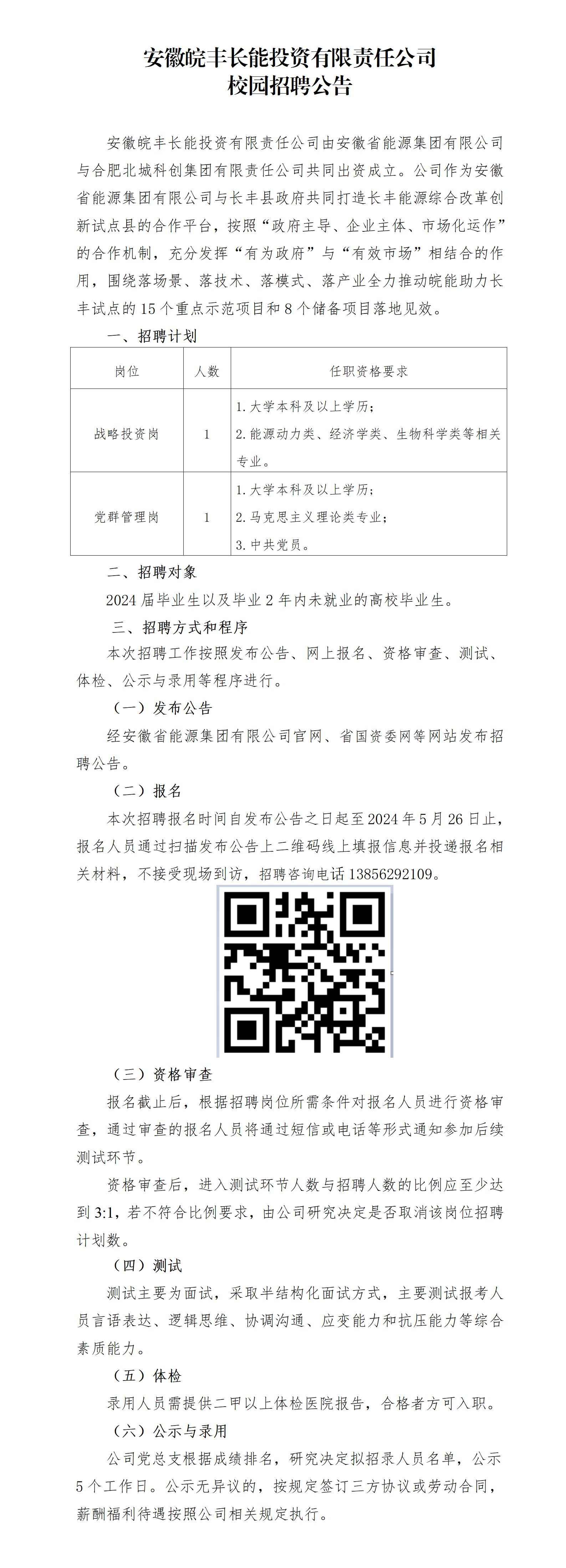 2024年安徽皖豐長能投資有限責(zé)任公司校園招聘公告