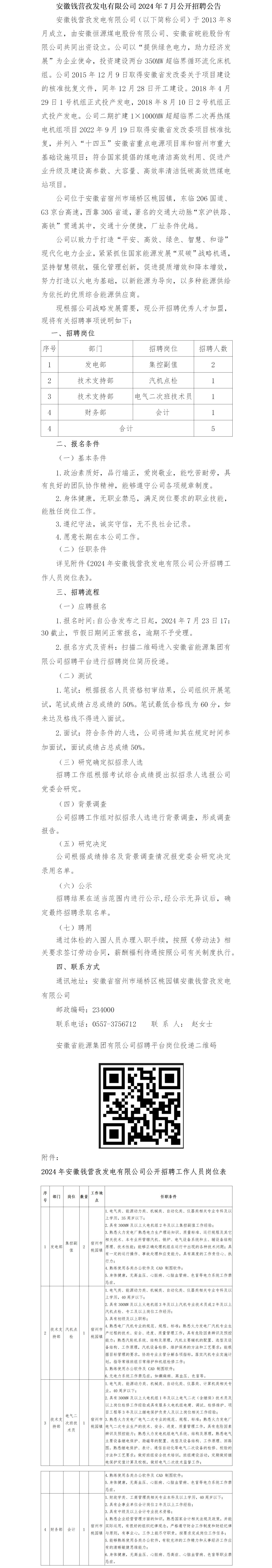 2024年宿州安徽錢(qián)營(yíng)孜發(fā)電有限公司公開(kāi)招聘公告