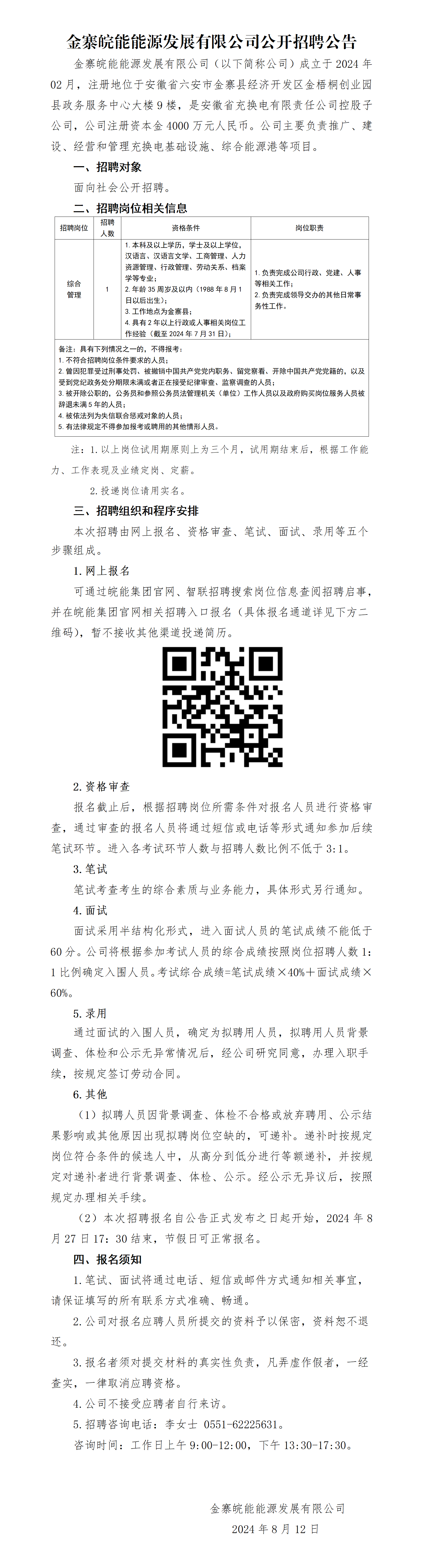 2024年六安金寨皖能能源發(fā)展有限公司公開招聘公告