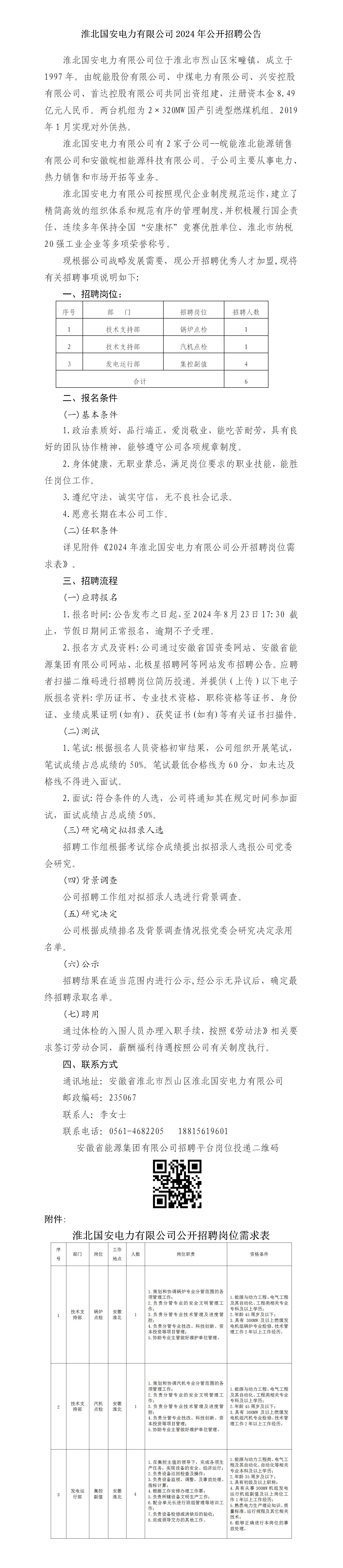 淮北國安電力有限公司有⒉家子公司--皖能淮北能源銷售有限公司和安徽皖相能源科技有限公司。子公司主要從事電力、熱力銷售和市場(chǎng)開拓等業(yè)務(wù)。