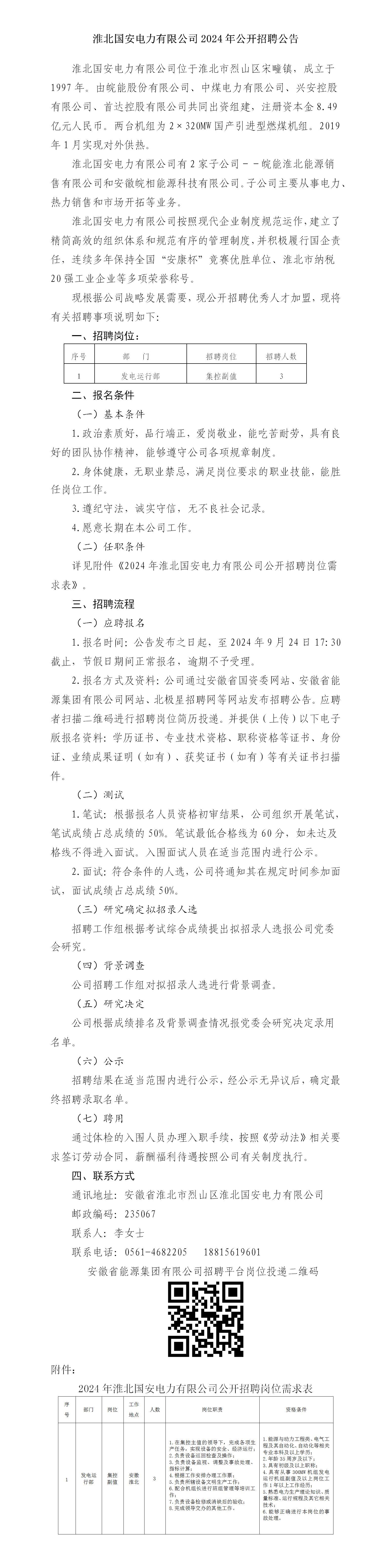 淮北國安電力有限公司有2家子公司-–皖能淮北能源銷售有限公司和安徽皖相能源科技有限公司。子公司主要從事電力、熱力銷售和市場開拓等業(yè)務。