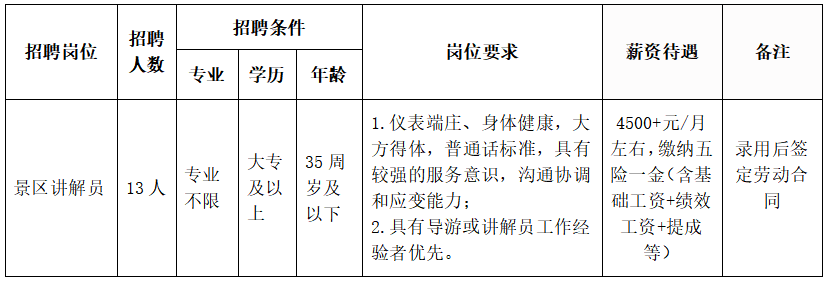 工作地點:徽州古城景區(qū)、許村景區(qū)、棠樾牌坊群景區(qū)、黃賓虹藝術(shù)中心。(備注:由公司統(tǒng)一調(diào)配工作地點,應(yīng)聘者需無條件服從安排。)