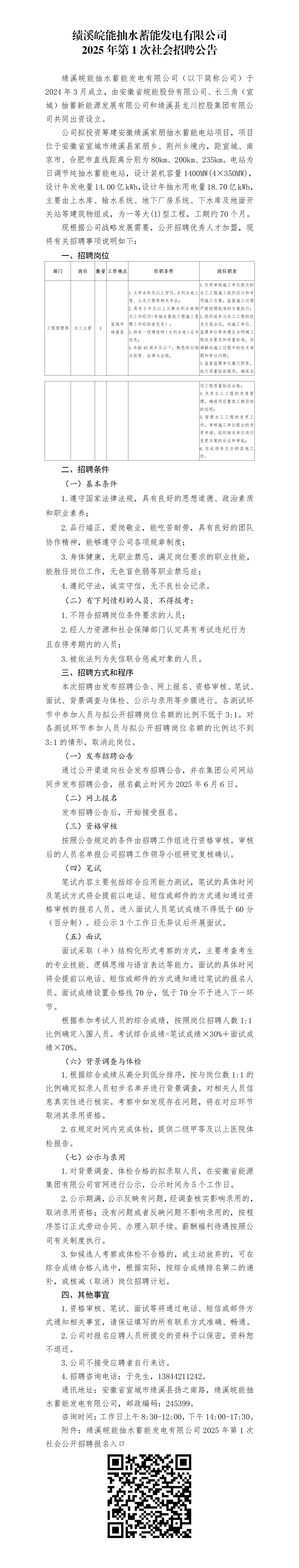 2025年宣城績溪皖能抽水蓄能發(fā)電有限公司第1次社會招聘公告