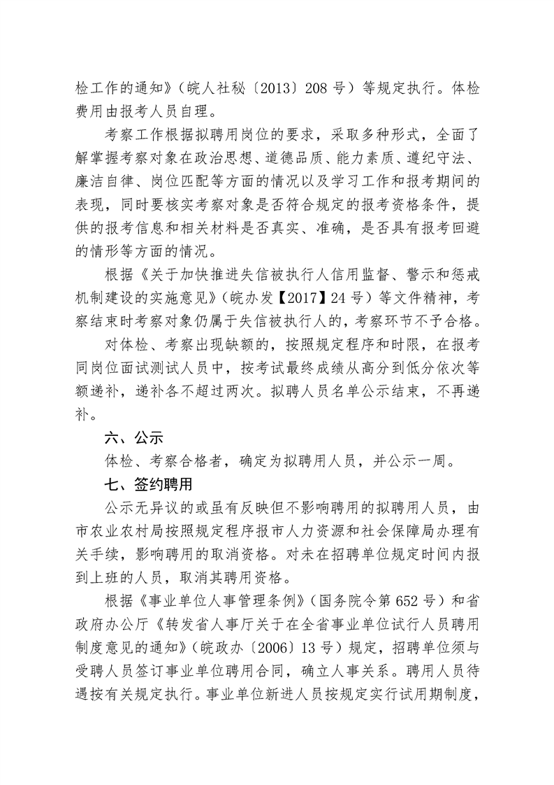 公示無(wú)異議的或雖有反映但不影響聘用的擬聘用人員,由市農(nóng)業(yè)農(nóng)村局按照規(guī)定程序報(bào)市人力資源和社會(huì)保障局辦理有關(guān)手續(xù),影響聘用的取消資格。對(duì)未在招聘單位規(guī)定時(shí)間內(nèi)報(bào)到上班的人員,取消其聘用資格。