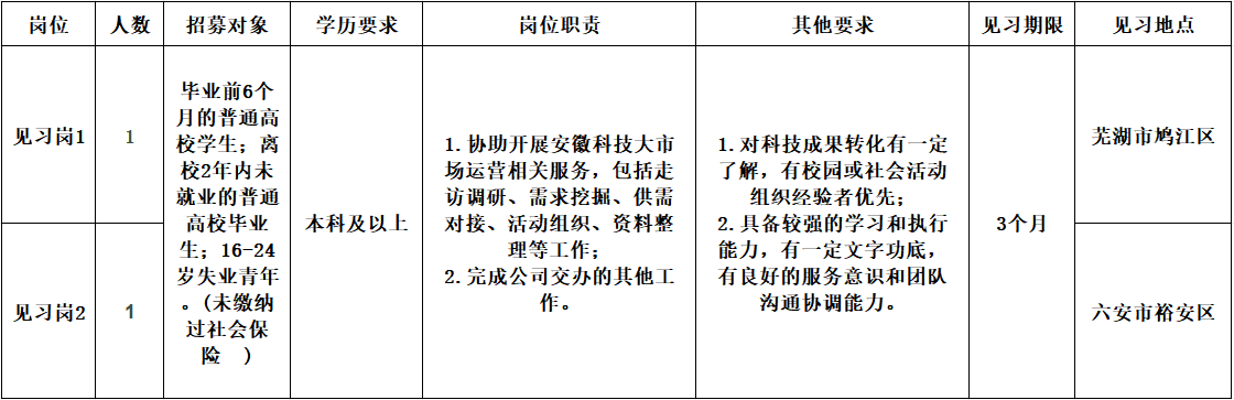 2025年安徽科技大市場(chǎng)建設(shè)運(yùn)營(yíng)有限責(zé)任公司見(jiàn)習(xí)人員招募公告
