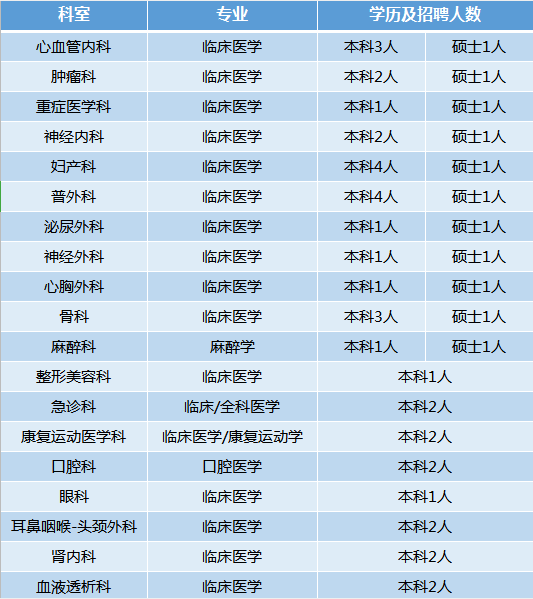 現(xiàn)因業(yè)務持續(xù)快速發(fā)展的需要,現(xiàn)面向校園和社會廣納人才,我們熱切地期待有識之士的加盟,醫(yī)院將為您提供廣闊的視野發(fā)展機遇和平臺。