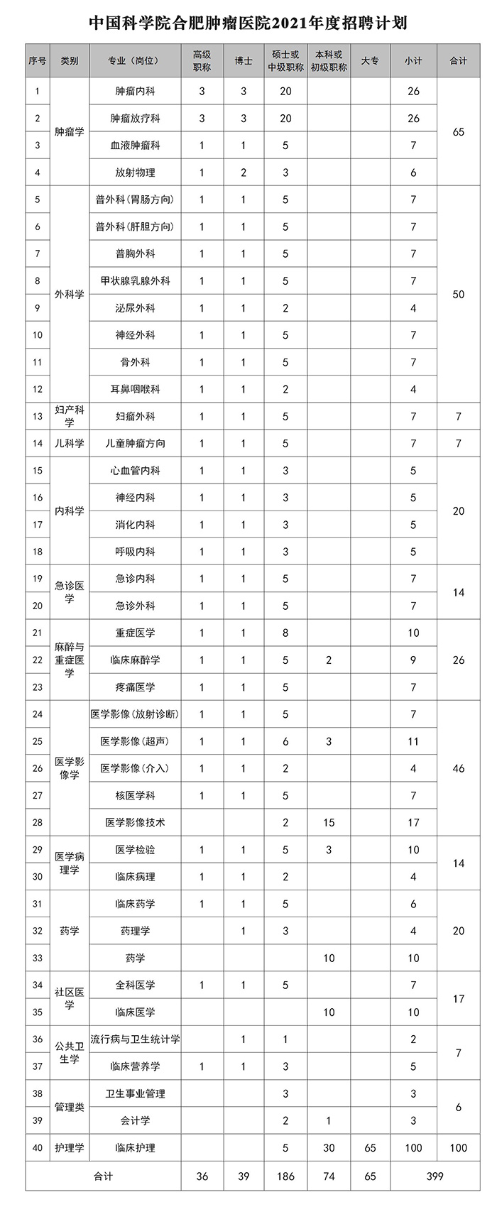 2021年中國科學院合肥腫瘤醫(yī)院招聘公告