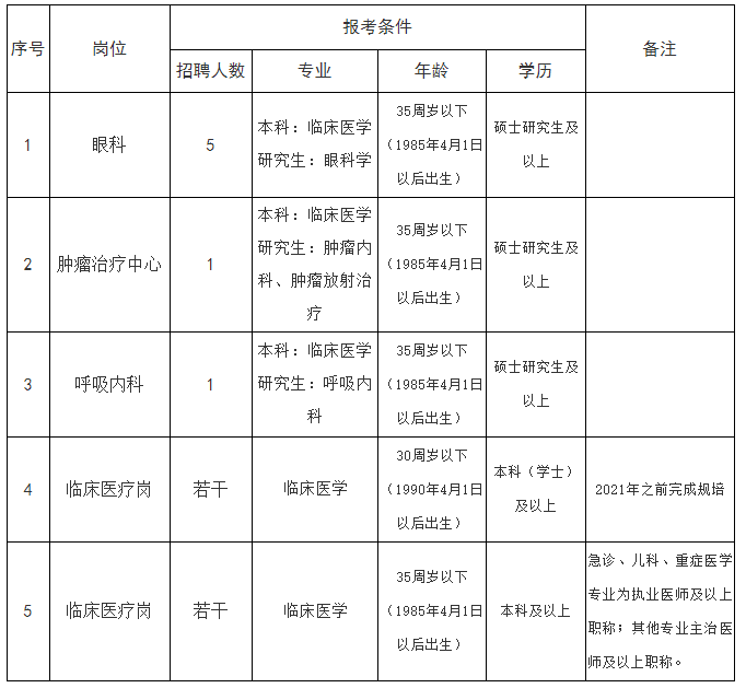 2021-03-31 19:29:49閱讀()安慶市第二人民醫(yī)院根據(jù)《事業(yè)單位人事管理?xiàng)l例》(國(guó)務(wù)院令第652號(hào))和中共安徽省委組織部、省人力資源和社會(huì)保障廳《關(guān)于印發(fā)<安徽省事業(yè)單位公開招聘人員暫行辦法>的通知》(皖人社發(fā)〔2010〕78號(hào))等規(guī)定,現(xiàn)就2021年度安慶市第二人民醫(yī)院公開招聘臨床專業(yè)碩博研究生及成熟人才有關(guān)事項(xiàng)公告如下: