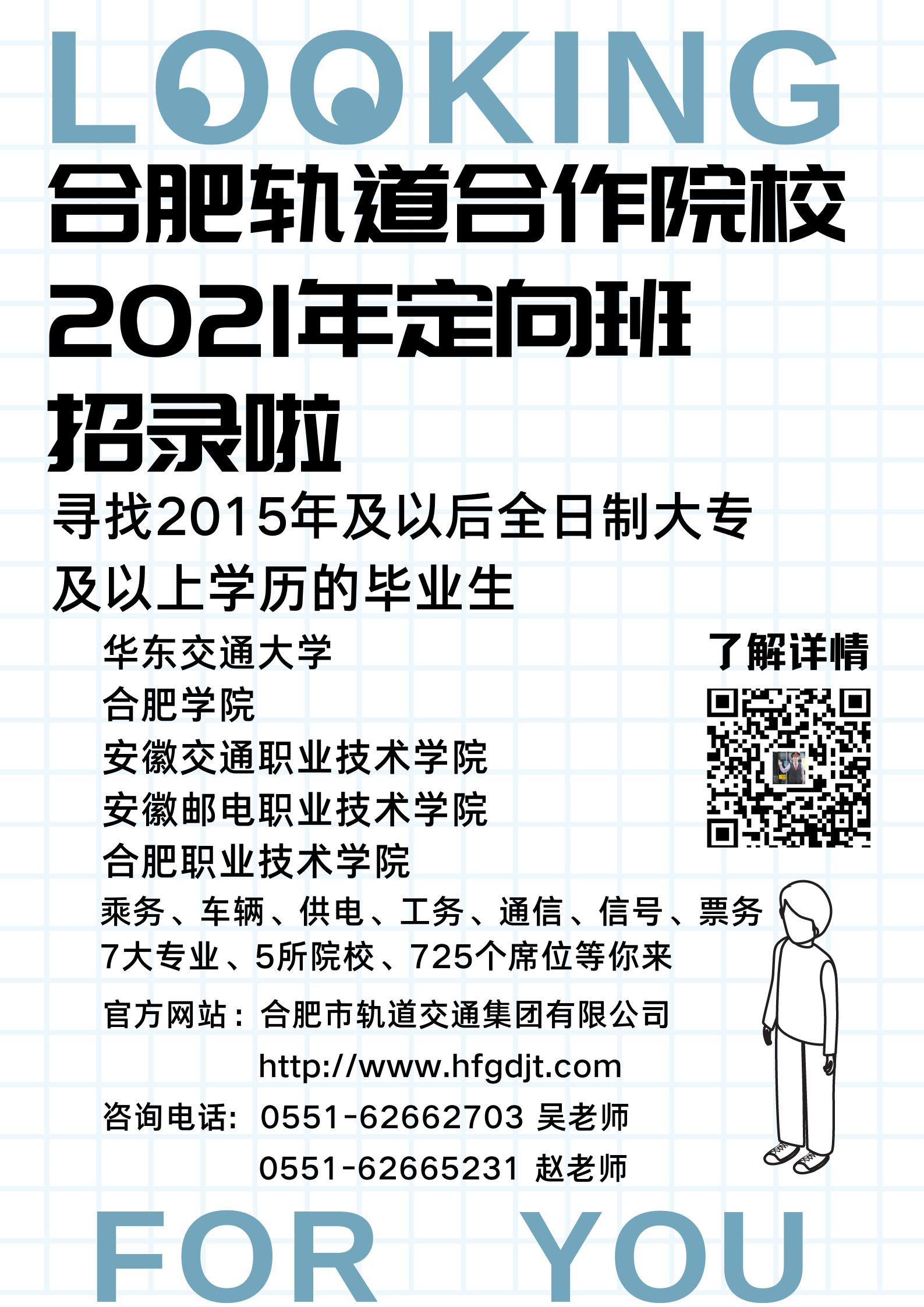 2021年合肥市軌道交通集團有限公司合作院校定向班招生公告