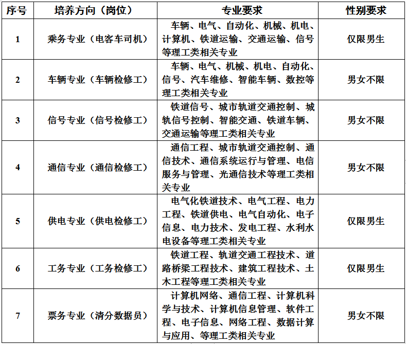 注:軌道交通相關專業(yè)優(yōu)先、具備相關技術崗位工作經驗優(yōu)先。每人限報一所院校一個專業(yè),重復報名視為無效。