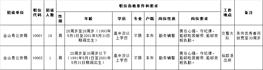 附件1:馬鞍山市公安局含山片區(qū)招聘警務(wù)輔助人員職位表