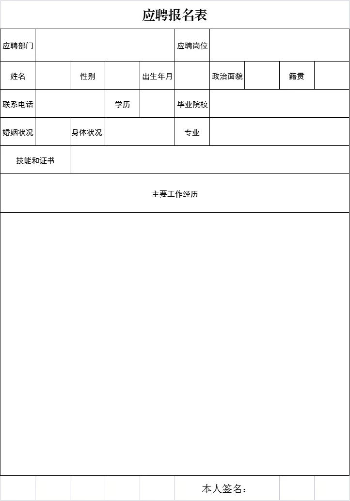 附:《應(yīng)聘報名表》