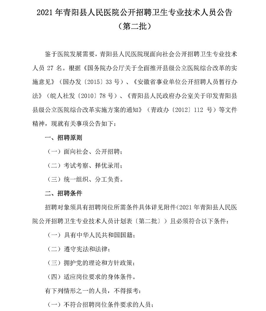 2021年池州青陽縣人民醫(yī)院公開招聘衛(wèi)生專業(yè)技術(shù)人員公告(第二批)