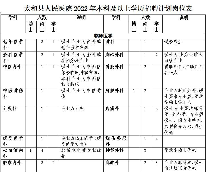2022年阜陽太和縣人民醫(yī)院招聘公告(本科及以上學歷)