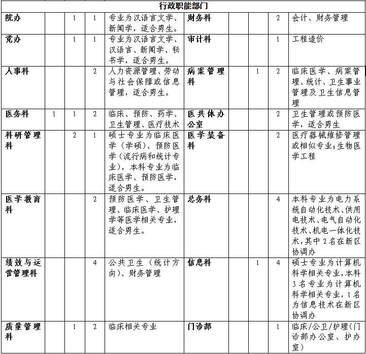 ①各招聘崗位具有碩士、中級職稱和執(zhí)業(yè)資格者優(yōu)先錄用;博士待遇面議;