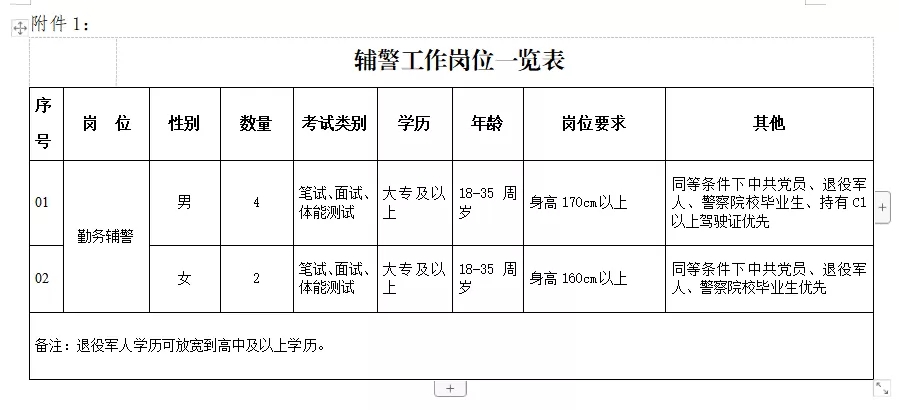 計劃招錄6名警務(wù)輔助人員,男性4名,女性2名。