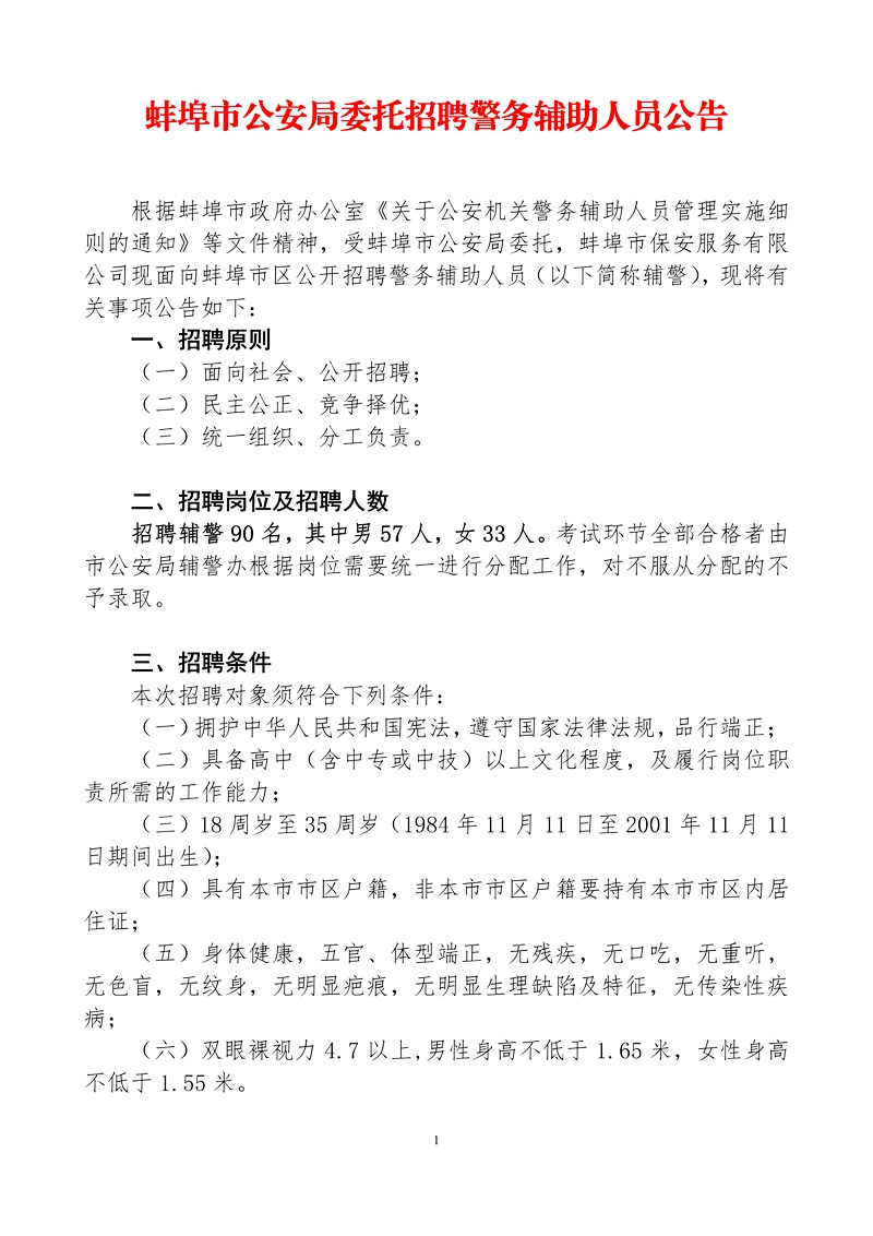 2019年蚌埠市公安局招聘警務輔助人員公告