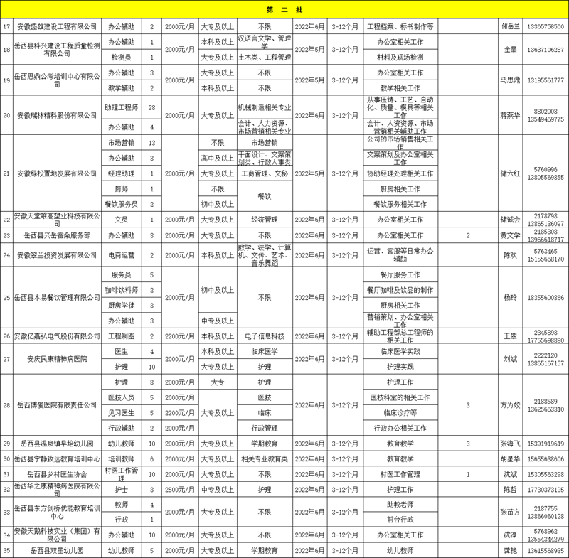 附件:《2022年度岳西縣就業(yè)見習(xí)招募崗位計劃(第二批)》(含第一批未招滿)