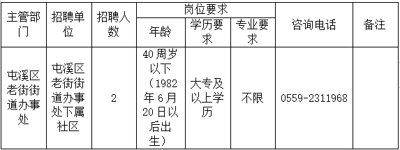 為切實加強(qiáng)街道工作人員的隊伍管理和建設(shè),解決工作人員不足問題,根據(jù)《屯溪區(qū)機(jī)關(guān)事業(yè)單位編外人員管理辦法》規(guī)定和要求,結(jié)合屯溪區(qū)老街街道辦事處工作實際所需,經(jīng)核準(zhǔn),屯溪區(qū)老街街道辦事處委托黃山市仁和人力資源服務(wù)有限公司面向社會公開招聘2名社區(qū)專職工作者。現(xiàn)將有關(guān)事項公告如下: