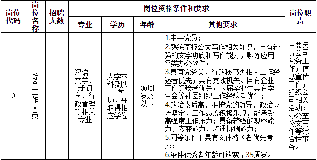 (七)“崗位條件和要求”中的“30周歲及以下”為“1991年6月28日及以后出生”;工作經(jīng)歷要求,截止時(shí)間為2022年 6月28日。因工作單位變化而中斷時(shí)間的,其在不同單位工作的時(shí)間可以累計(jì)計(jì)算。在校學(xué)生在讀期間參加勤工儉學(xué)、實(shí)習(xí)等不視為工作經(jīng)歷。(其他涉及年齡計(jì)算的依此類推)。