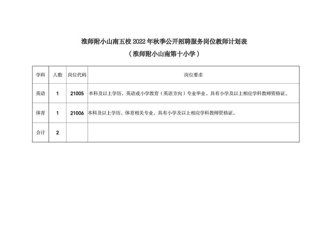 2022年淮南高新區(qū)(山南新區(qū))淮師附小山南五校公開招聘服務崗位教師公告