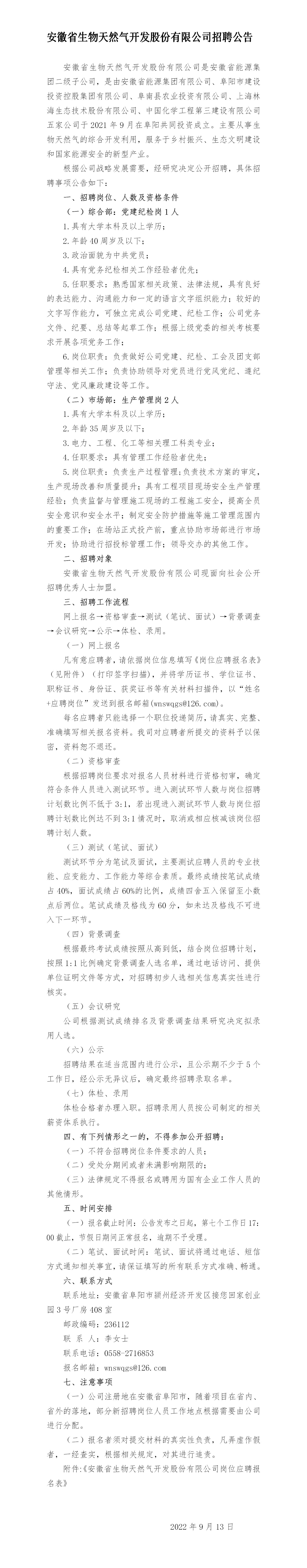 2022年阜陽(yáng)安徽省生物天然氣開(kāi)發(fā)股份有限公司招聘公告