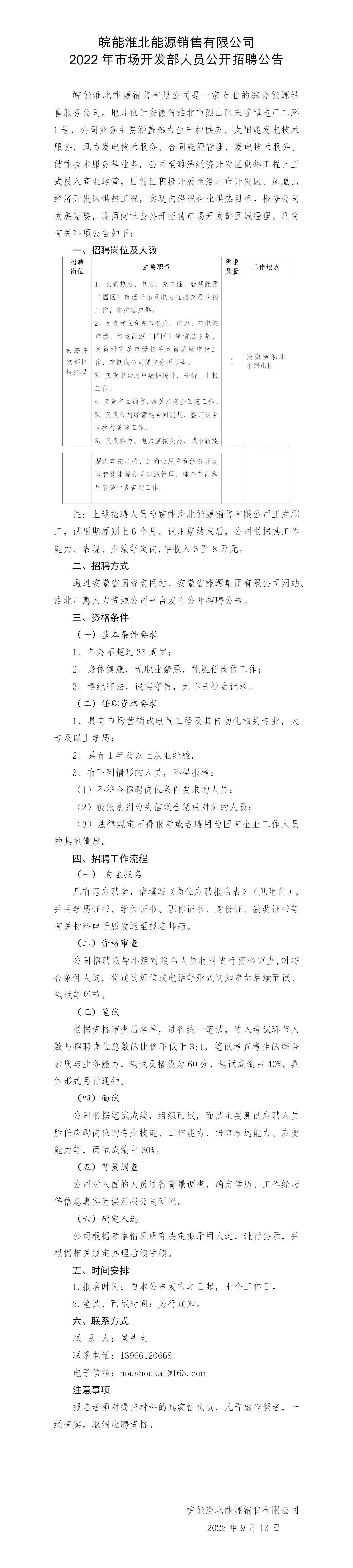 2022年皖能淮北能源銷售有限公司市場(chǎng)開發(fā)部人員公開招聘公告
