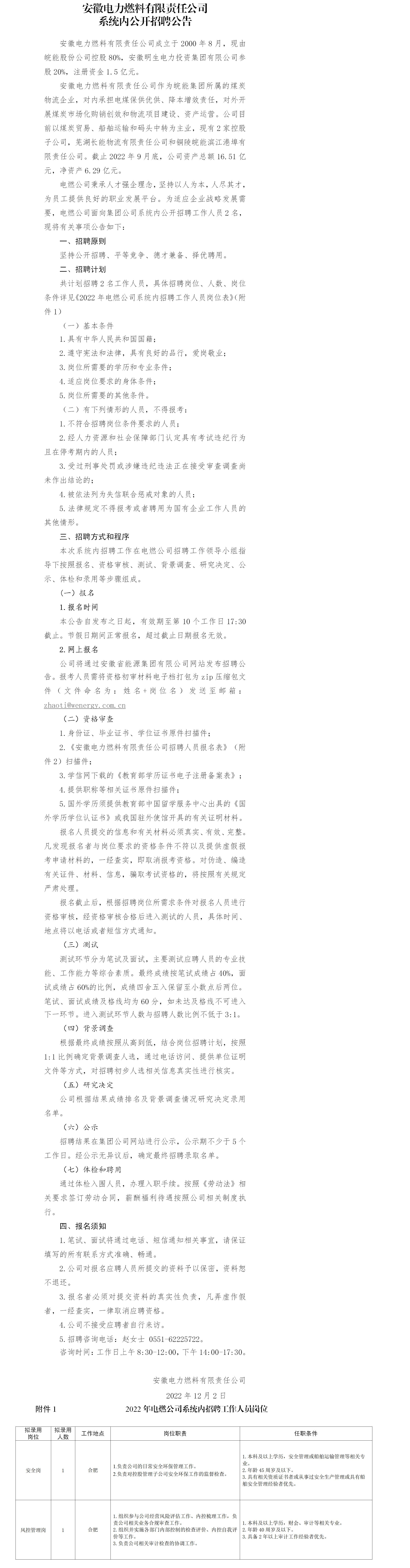 2022年安徽電力燃料有限責(zé)任公司系統(tǒng)內(nèi)公開(kāi)招聘公告