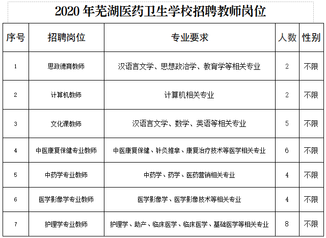 2020年蕪湖醫(yī)藥衛(wèi)生學(xué)校教師招聘公告