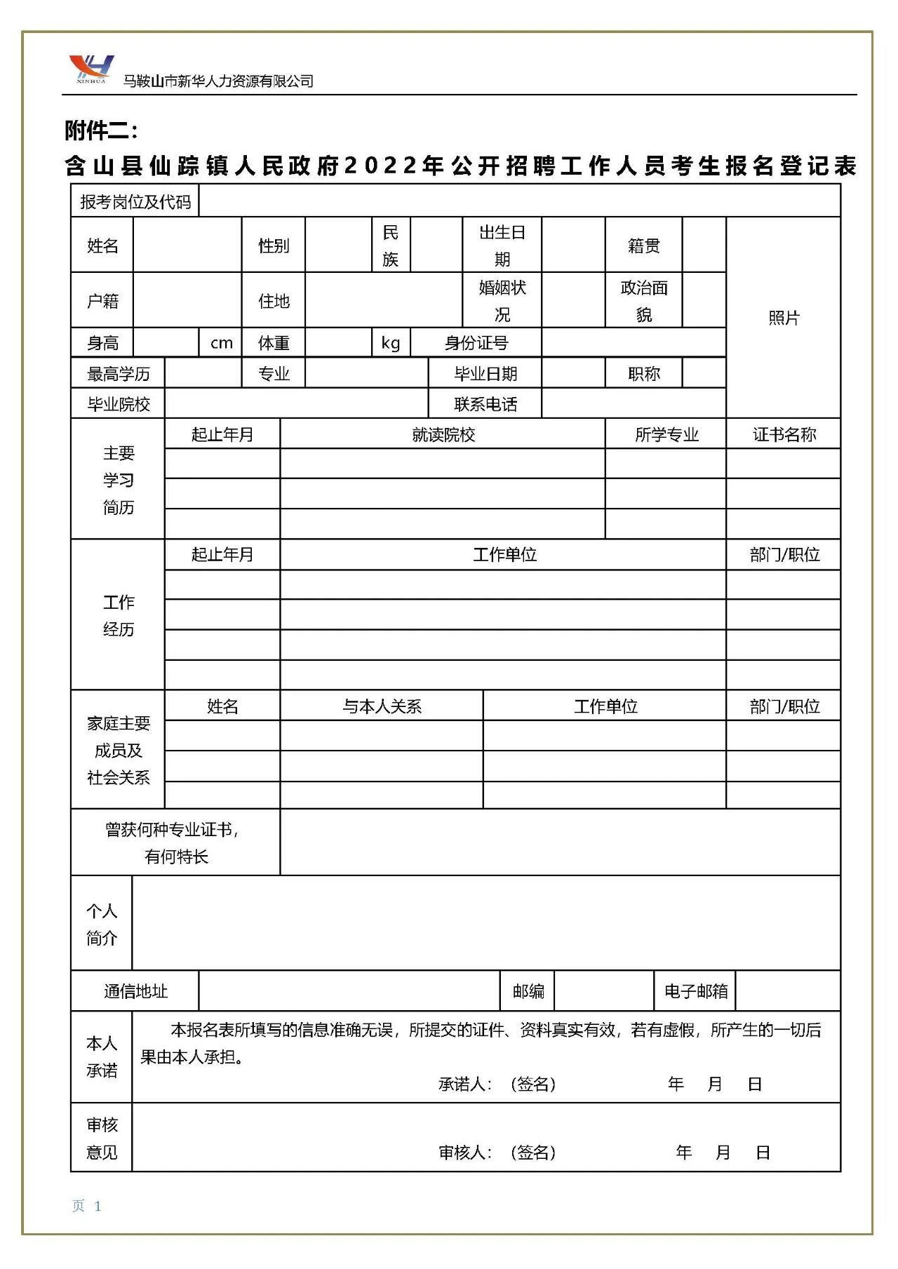(1)本人簽名確認(rèn)的《含山縣仙蹤鎮(zhèn)人民政府2022年公開(kāi)招聘工作人員考生報(bào)名登記表》(附件二,請(qǐng)自行下載填寫(xiě)并打印);