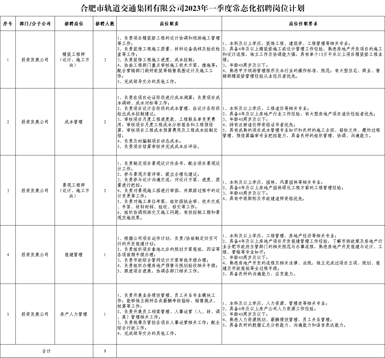 2023年一季度合肥市軌道交通集團有限公司常態(tài)化招聘公告