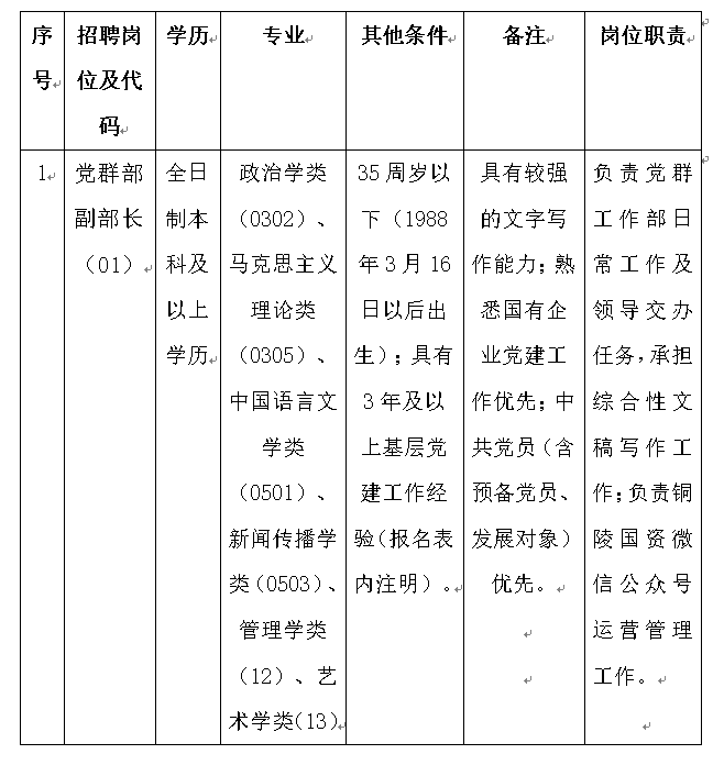 因2023年銅陵市保安服務(wù)總公司公開招聘黨群部副部長報(bào)名人數(shù)未達(dá)到開考比例,同時(shí)為擇優(yōu)錄取,現(xiàn)根據(jù)有關(guān)規(guī)定和工作需要,對(duì)招聘崗位及條件進(jìn)行調(diào)整和補(bǔ)充?,F(xiàn)將有關(guān)事項(xiàng)公告如下: