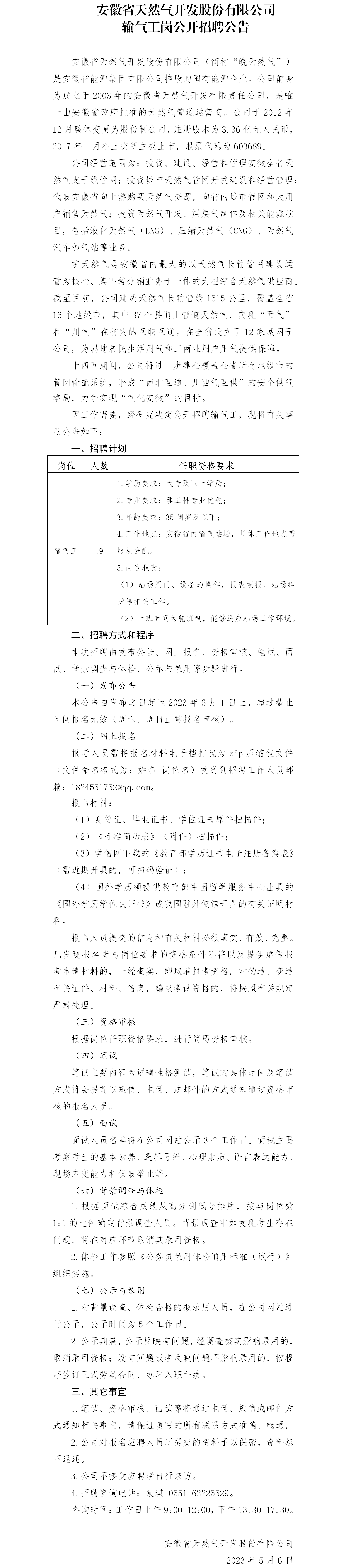 2023年安徽省天然氣開發(fā)股份有限公司輸氣工崗公開招聘公告(二)