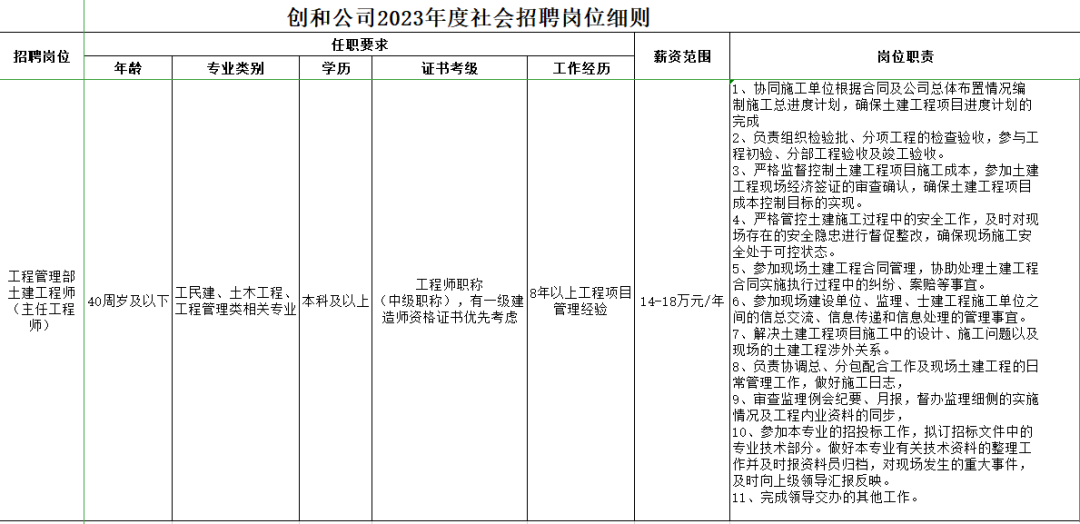 為滿足公司發(fā)展需要,根據(jù)《合肥創(chuàng)和資產(chǎn)管理有限責任公司員工招聘管理辦法》的要求,結(jié)合公司的實際情況,擬面向社會公開招聘工程管理部土建工程師2名。