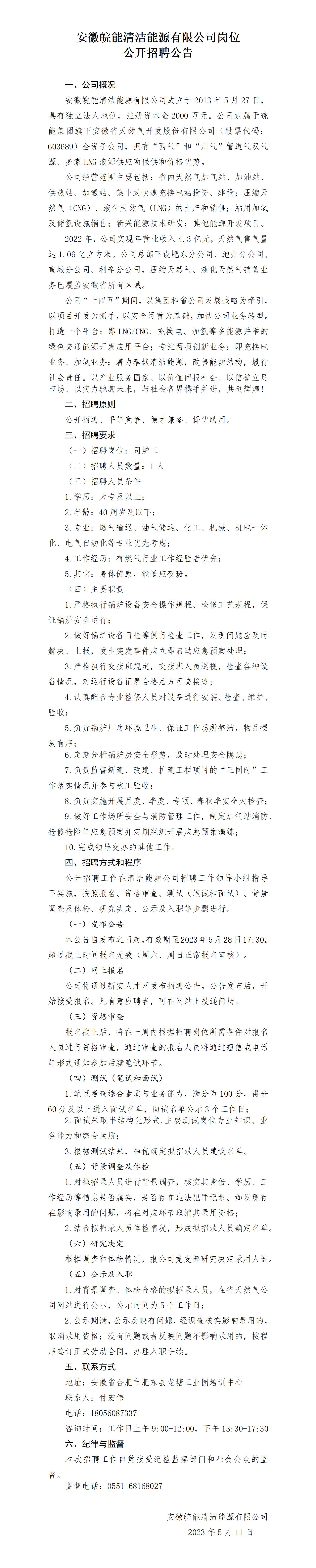 2023年安徽皖能清潔能源有限公司崗位公開(kāi)招聘公告