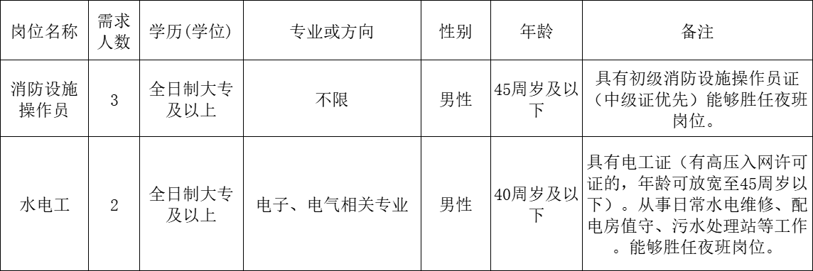 1.對(duì)公告無(wú)異議人員,由公司委派到黃山市傳染病醫(yī)院(黃山市人民醫(yī)院西區(qū))從事消防設(shè)施操作員、水電工工作。