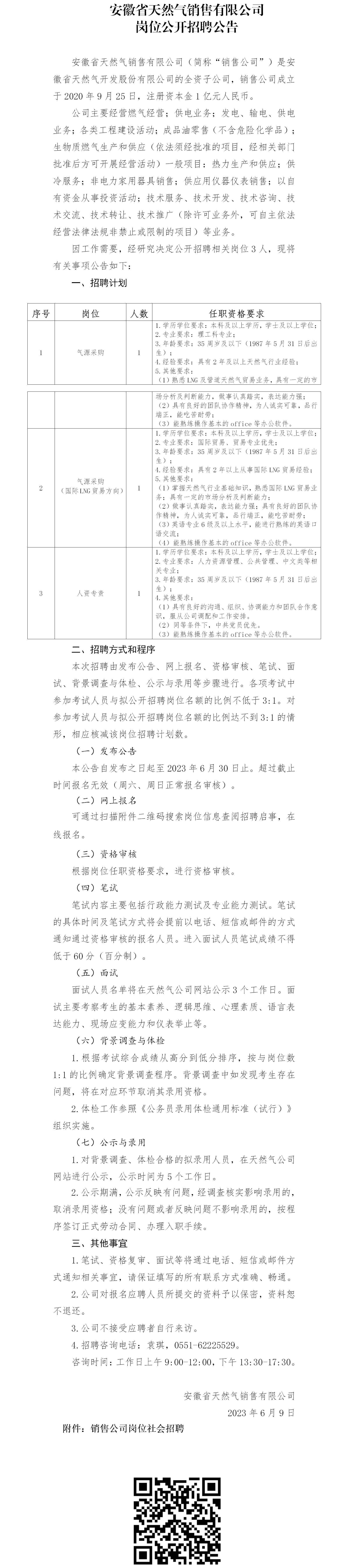 2023年安徽省天然氣銷售有限公司崗位公開招聘公告