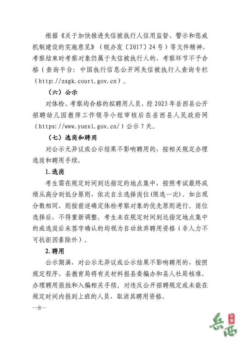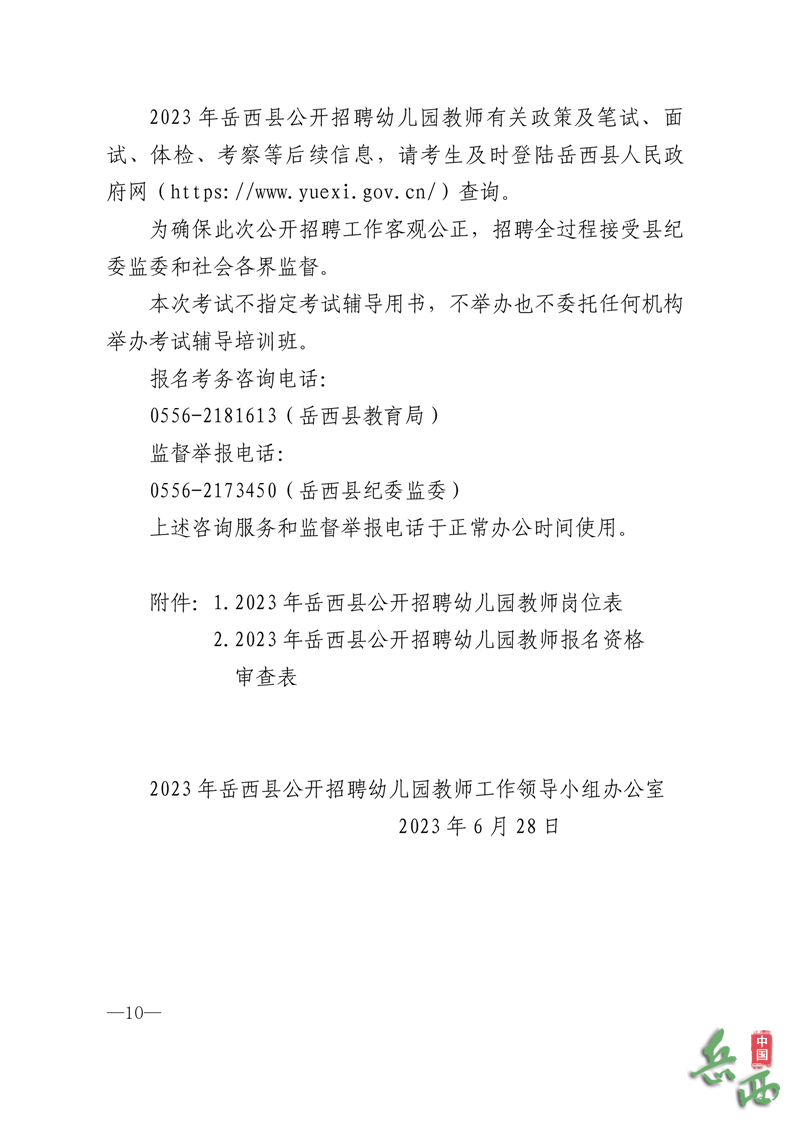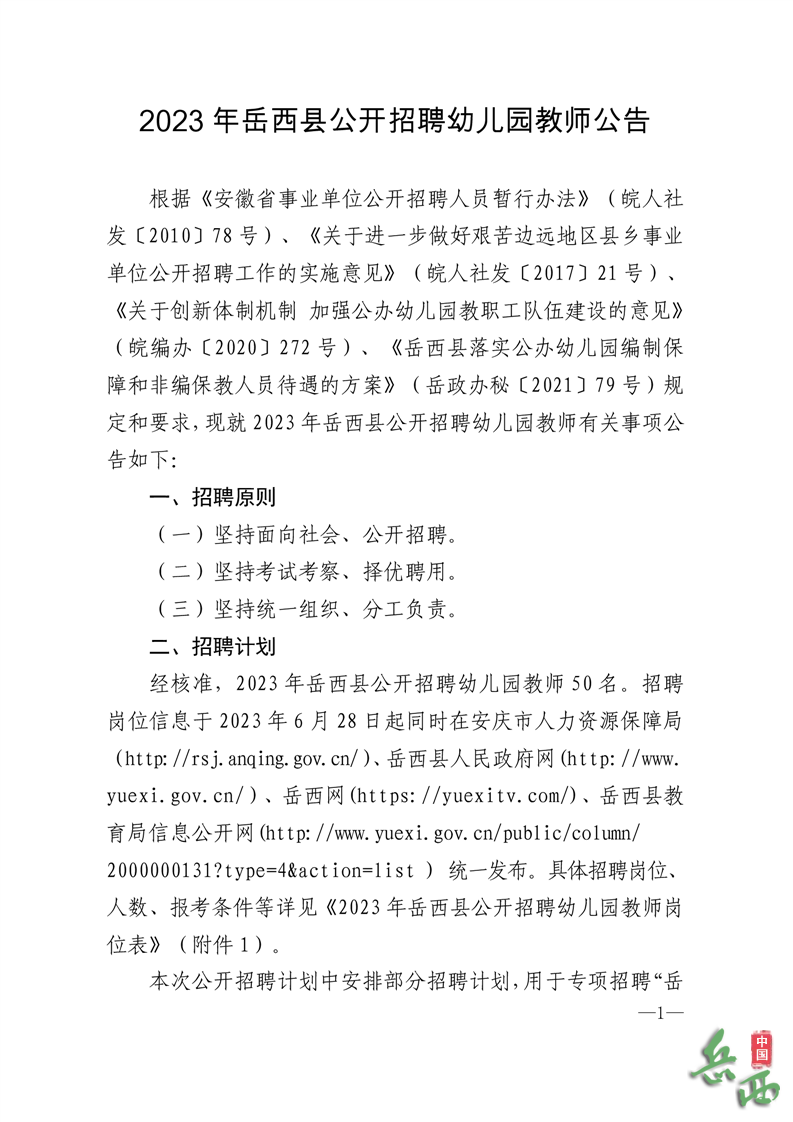 經(jīng)核準(zhǔn),2023年岳西縣公開招聘幼兒園教師50名。招聘崗位信息于2023年6月28日起同時(shí)在安慶市人力資源保障局