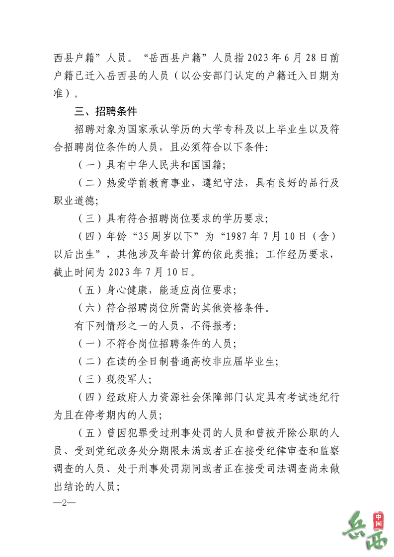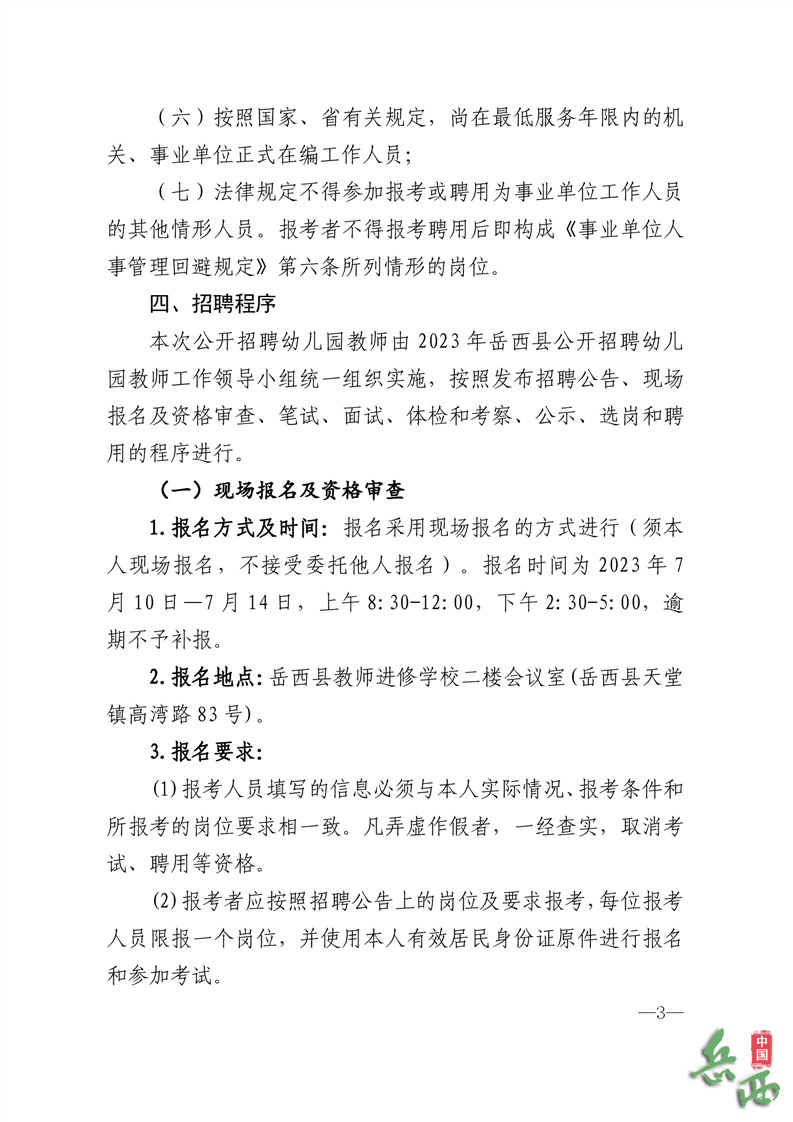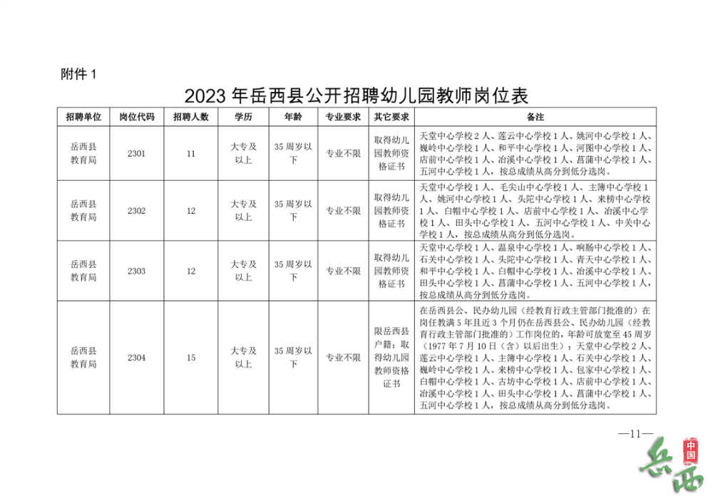 2023-06-28 19:11:22閱讀()岳西縣人民政府根據(jù)《安徽省事業(yè)單位公開招聘人員暫行辦法》(皖人社發(fā)〔2010]78號(hào))、《關(guān)于進(jìn)一步做好艱苦邊遠(yuǎn)地區(qū)縣鄉(xiāng)事業(yè)單位公開招聘工作的實(shí)施意見》(皖人社發(fā)〔2017〕21號(hào))、《關(guān)于創(chuàng)新體制機(jī)制加強(qiáng)公辦幼兒園教職工隊(duì)伍建設(shè)的意見》(皖編辦〔2020〕272號(hào))、《岳西縣落實(shí)公辦幼兒園編制保障和非編保教人員待遇的方案》(岳政辦秘〔2021] 79號(hào))規(guī)定和要求,現(xiàn)就2023年岳西縣公開招聘幼兒園教師有關(guān)事項(xiàng)公告如下: